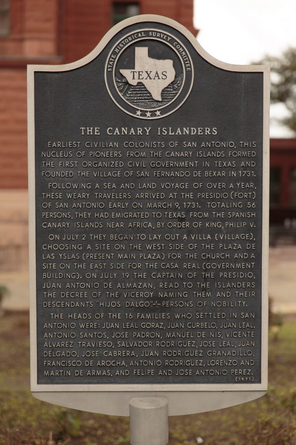 San Antonio de Béjar se funda con un destacamento militar y misioneros franciscanos en 1716 para asegurar la frontera frente a las incursiones extranjeras, aunque el asentamiento civil llegaría en 1731 con la llegada de familias canarias. Setenta y dos personas* llegaron a Veracruz (México) el 19 de Junio de 1730 desde las islas, luego de varias expediciones fallidas, y desde allí iniciaron su propio éxodo, que se convertiría en una heroica aventura plagada de peligros cruzando todo el territorio de México (cuatro veces la extensión de España), hasta el entonces Presidio de San Antonio de Béjar. El 9 de Marzo de 1731, casi un año después, llegan a San Antonio y se preparan para formalizar la sociedad civil junto con los militares, sus familias y 250 indios. A finales de Marzo queda formalizado el primer Cabildo de Fundación con todos sus miembros canarios.
